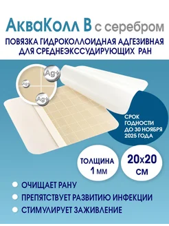 Гидроколлоидная повязка от пролежней АкваКолл B Аг+ 20х20см