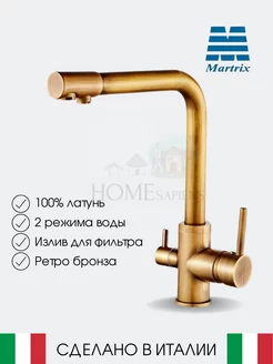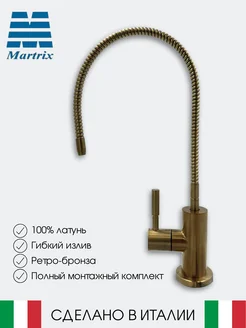 Кран для фильтра Ретро-бронза MATRIX излив гибкий