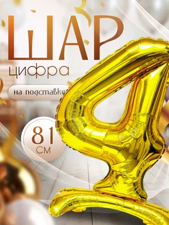 Воздушный шар цифра 1 на подставке фольгированный розовый