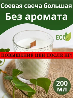 Свеча в стакане без запаха большая, с деревянным фитилем