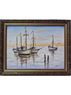 Картина маслом ХМО Парусники, в рамке 48х38 см