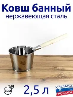 Ковш 2,5 л банный нержавеющий с деревянной ручкой