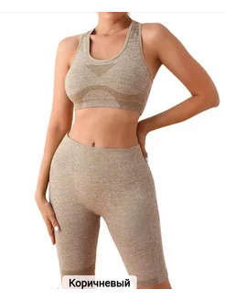 Спортивный фитнес костюм велосипедки+топ эффектом push up