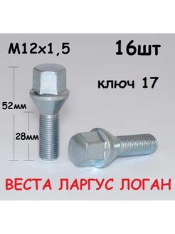 Болты колесные Ваз М12х1,25 набор 16шт. под ключ 17