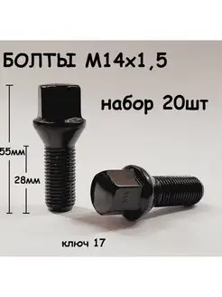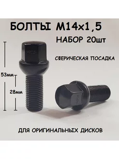 Болты М14х1,5 20шт Черные сфера под оригинальные диски