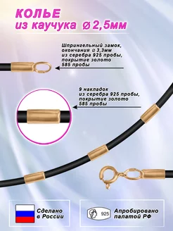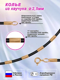 Колье чокер из каучука с серебряными накладками 925 пробы