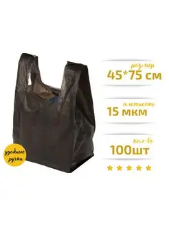 Пакет майка,черный большой, 100 шт, 45*75 см