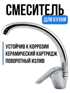 Смеситель для кухни с поворотным изливом, хромированный