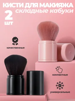 Кисть для макияжа пудры и румян складная в футляре
