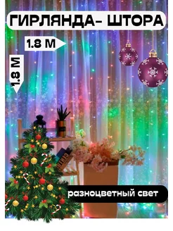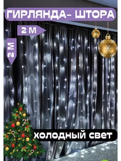 Гирлянда штора 1.8х1.8 на окно новогодняя