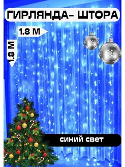 Гирлянда штора 1.8х1.8 на окно новогодняя синяя
