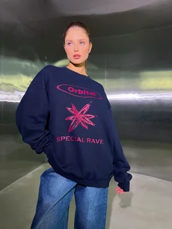 Свитшот с принтом удлиненный оверсайз