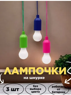 Лампочка на шнурке фонарик с батарейками - 3 шт
