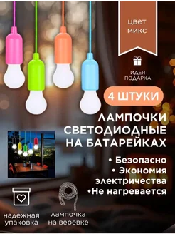 Лампочка на шнурке фонарик с батарейками - 4 шт