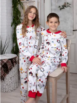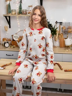 Пижама новогодняя в клеточку - нательный комбинезон слип