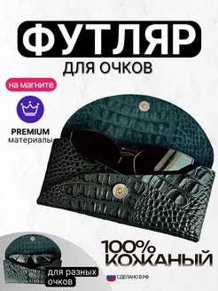 Футляр для очков кожаный мягкий на магнитной кнопке