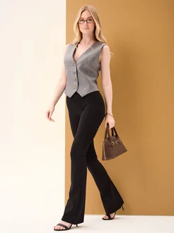 Юбка женская миди трикотажная в рубчик черная с разрезом