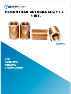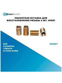 RS0007 Ремонтная резьбовая вставка 4 шт. М10х1 - M12x1.25