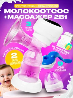 Молокоотсос электрический и ручной 2в1 с массажем