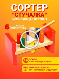 Деревянная игрушка сортер с молотком стучалка для малыша