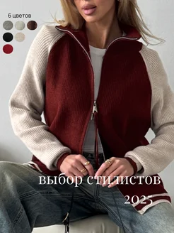Свитер кардиган оверсайз теплый с горлом вязаный на молнии
