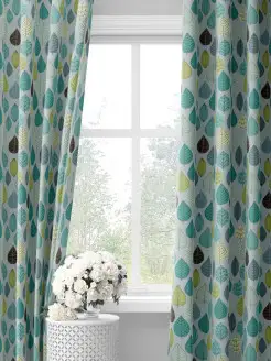 Комплект голубых штор Уютные листья 145х275 - 2 шт