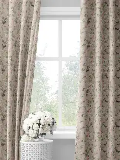 Бежевые шторы с розовыми розами, 145х275 - 2шт