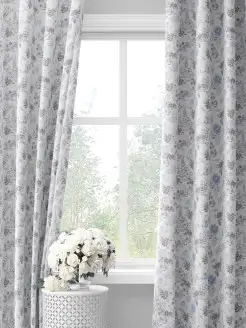 Бело-голубые шторы Весенние цветы 145х275 - 2 шт