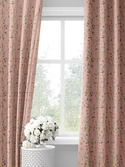 Розовые шторы с оранжевыми полевыми цветами 145х275-2шт
