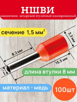 Наконечник штыревой втулочный изолированный НШВИ 1,5-8 100шт
