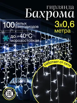 Гирлянда бахрома для дома и улицы белое свечение