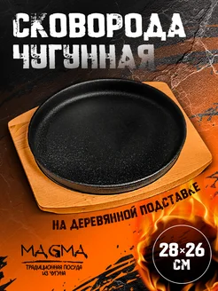 Сковорода чугунная 17.2 см, деревянная подставка в комплекте