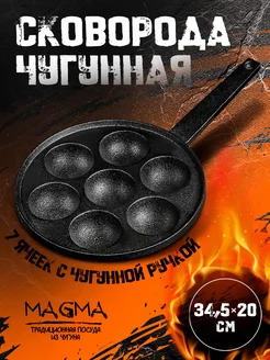 Сковорода чугунная блинная 26 см, с лопаткой, индукция
