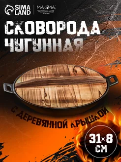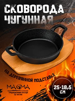Сковорода чугунная 20,3 см, деревянная подставка в комплекте