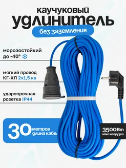 Морозостойкий удлинитель КГ-ХЛ 30м уличный каучуковый 2х1.5