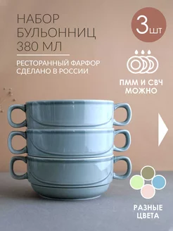 Набор из 3-х бульонниц цветной фарфор Темно серый 380 мл