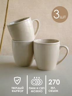 Набор из 3-х кружек фарфоровых для чая и кофе 270 мл