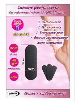 Сменные файлы 50шт100 грит,педикюрной терки 32*107черные