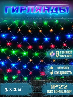 Гирлянда сетка 3х2 цветная, с удлинителем,елка