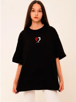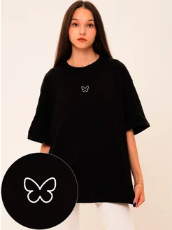 Футболка черная оверсайз с принтом бабочки