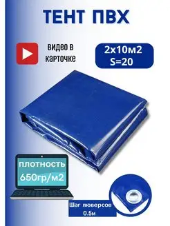 Тент водонепроницаемый ПВХ 2х10м2 650г м2