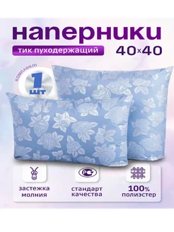 Наперник 40х40 на молнии,1шт чехол пуходержащий Голубые розы