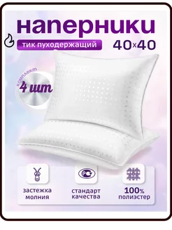 Наперник 40х40 на молнии,4шт чехол пуходержащий Белый