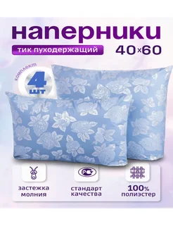 Наперник 40х60 на молнии, 4 шт Голубые розы