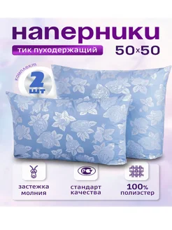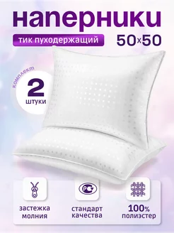 Наперник 50х50 на молнии,2шт чехол пуходержащий Белый