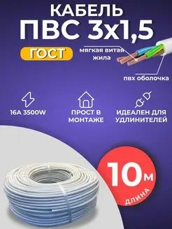 Провод соединительный ПВС 3*1,5 ГОСТ 10 м