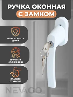 Ручки оконная с замком и ключом белая для ПВХ (3 комплекта)