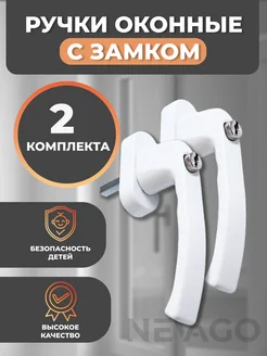 Ручки оконная с замком и ключом белая для ПВХ (2 комплекта)