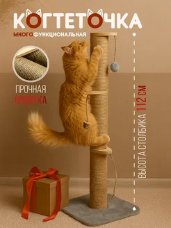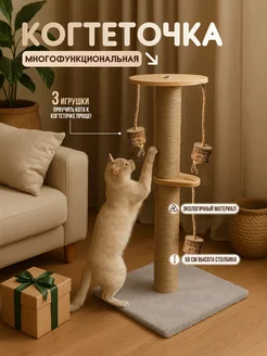 Когтеточка для кошки напольная высокая с игрушками и мятой