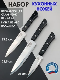 Ножи кухонные острые набор 3 штуки черная рукоять